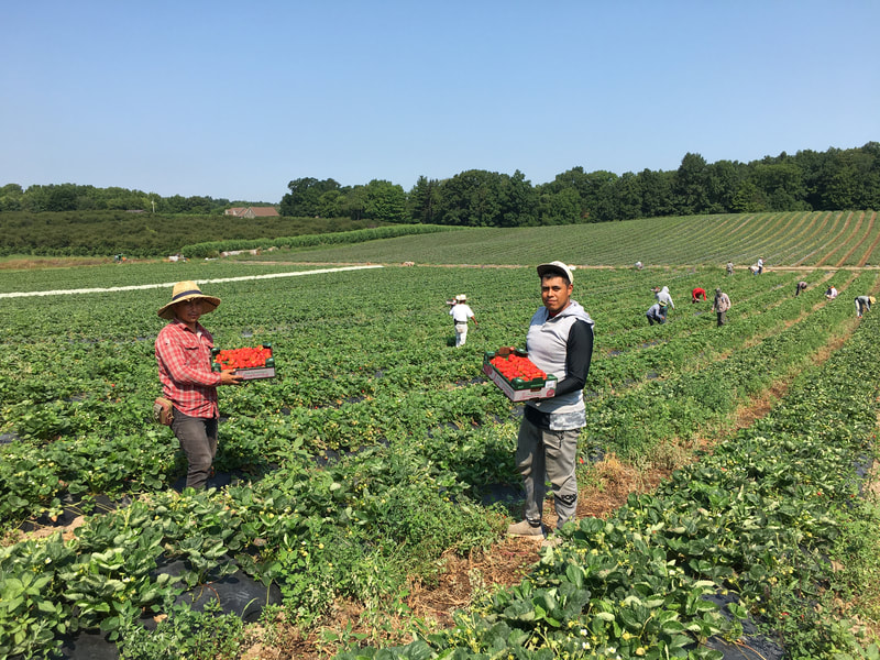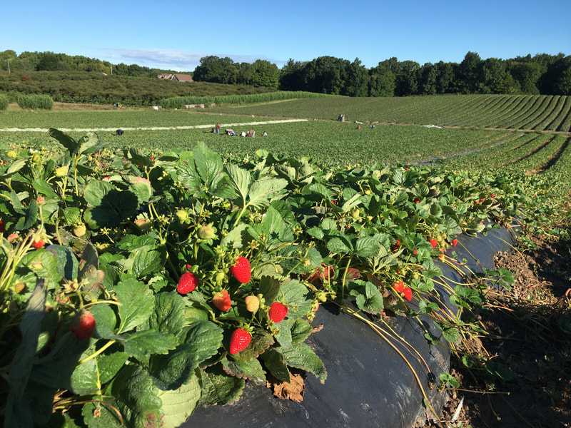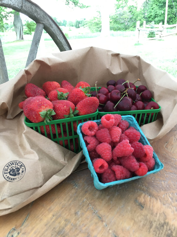 On our farm, we harvest a wide variety of berries, orchard fruit and sweet corn. We farm over 150 acres in Fenwick, on many parcels of land, so we can not offer u-pick for all our crops. Our summer staff is busy with field work and our farm markets. Our barn is set up for wholesale, not retail. . . although if your in the area you can pop by and pick up some farm fresh berries & peaches 🙂